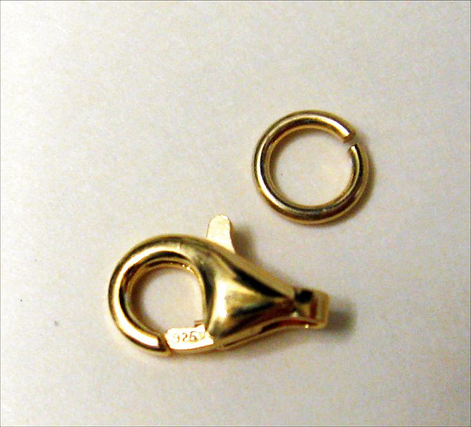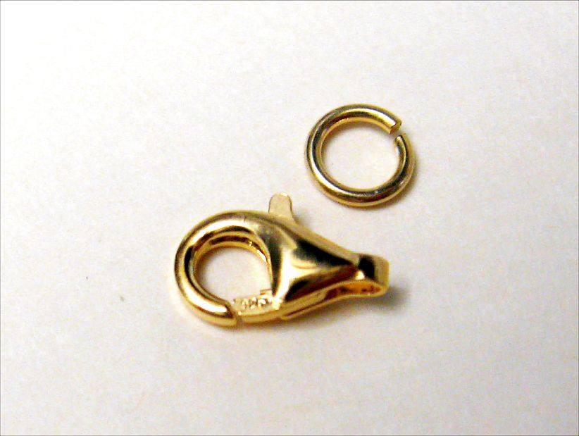 Karabiner aus Silber 925 vergoldet mit Biegering offen Größe: 11 mm Menge: 1 Stück