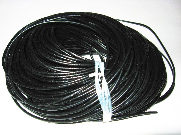 4 m Lederband Rund Schwarz 3 mm dick, Meterware.